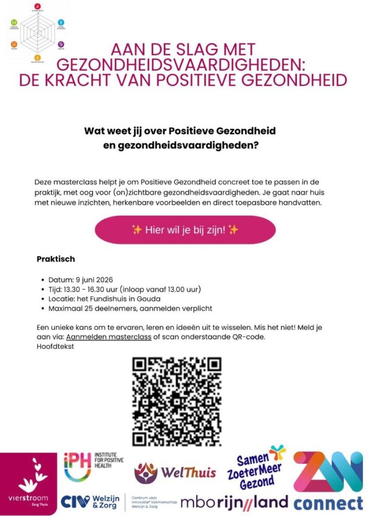 Wat weet jij over Positieve Gezondheid en gezondheidsvaardigheden?   Deze masterclass helpt je om Positieve Gezondheid contreet toe te passen in de praktijk, met oog voor (on)zichtbare gezondheidsvaardigheden. Aanmelden: Masterclass Positieve gezondheid en gezondheidsvaardigheden