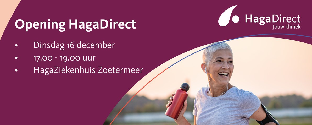 Het HagaZiekenhuis opent een aparte kliniek voor planbare zorg: HagaDirect. Om de start feestelijk te vieren, nodigt het HagaZiekenhuis je graag uit voor de officiële opening. Deze is op dinsdag 16 december in HagaZiekenhuis Zoetermeer.